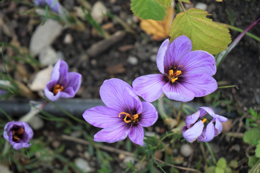 - Ils sont beaux : de très jolies fleurs violettes chinées qui ont le bon goût d’égailler notre jardin mi-fin octobre.