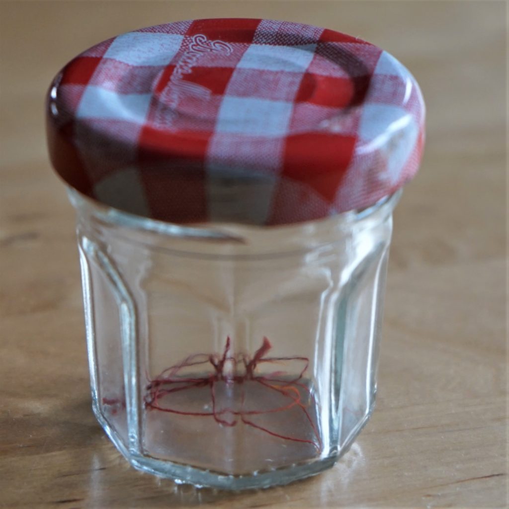 Astuce 4 : il ne faut pas consommer votre safran tout de suite mais il faut le laisser maturer. Je le mets dans un bocal hermétique et attends deux mois avant de le consommer. J’ai essayé de consommer les stigmates juste après séchage mais je les ai trouvés sans goût.